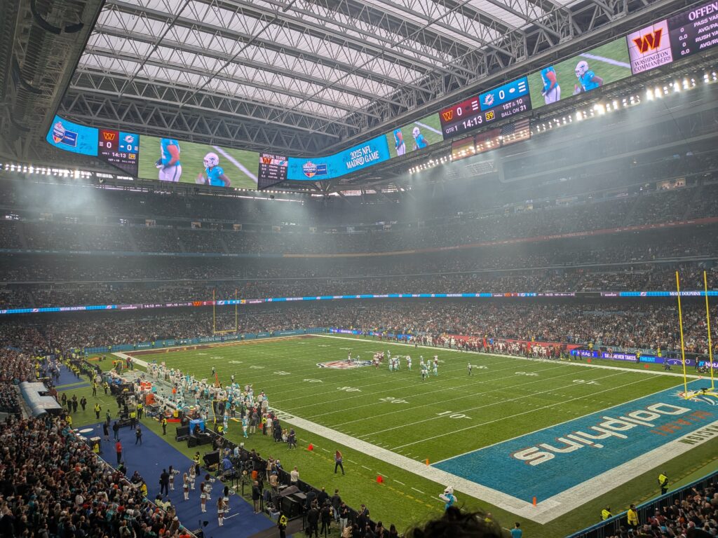 Una visita d’un dia a Madrid amb el Ximo per veure un apassionant Dolphins-Commanders de la NFL. El Bernabéu espectacular, això sí.